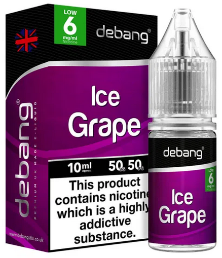 DebangDeBang Ice Grape E Liquid. The juicy purple grape paired with a cool breeze of menthol provides a refreshingly fruity vape. Vendor: De-Bang Bottle ...