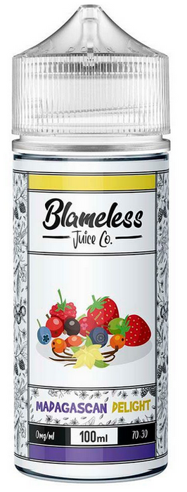 Madagascan Delight E Liquid by Blameless Juice Co. A mixture of strawberrys and blueberries mixed with a smooth creamy vanilla. A must have for you dessert vapers..
